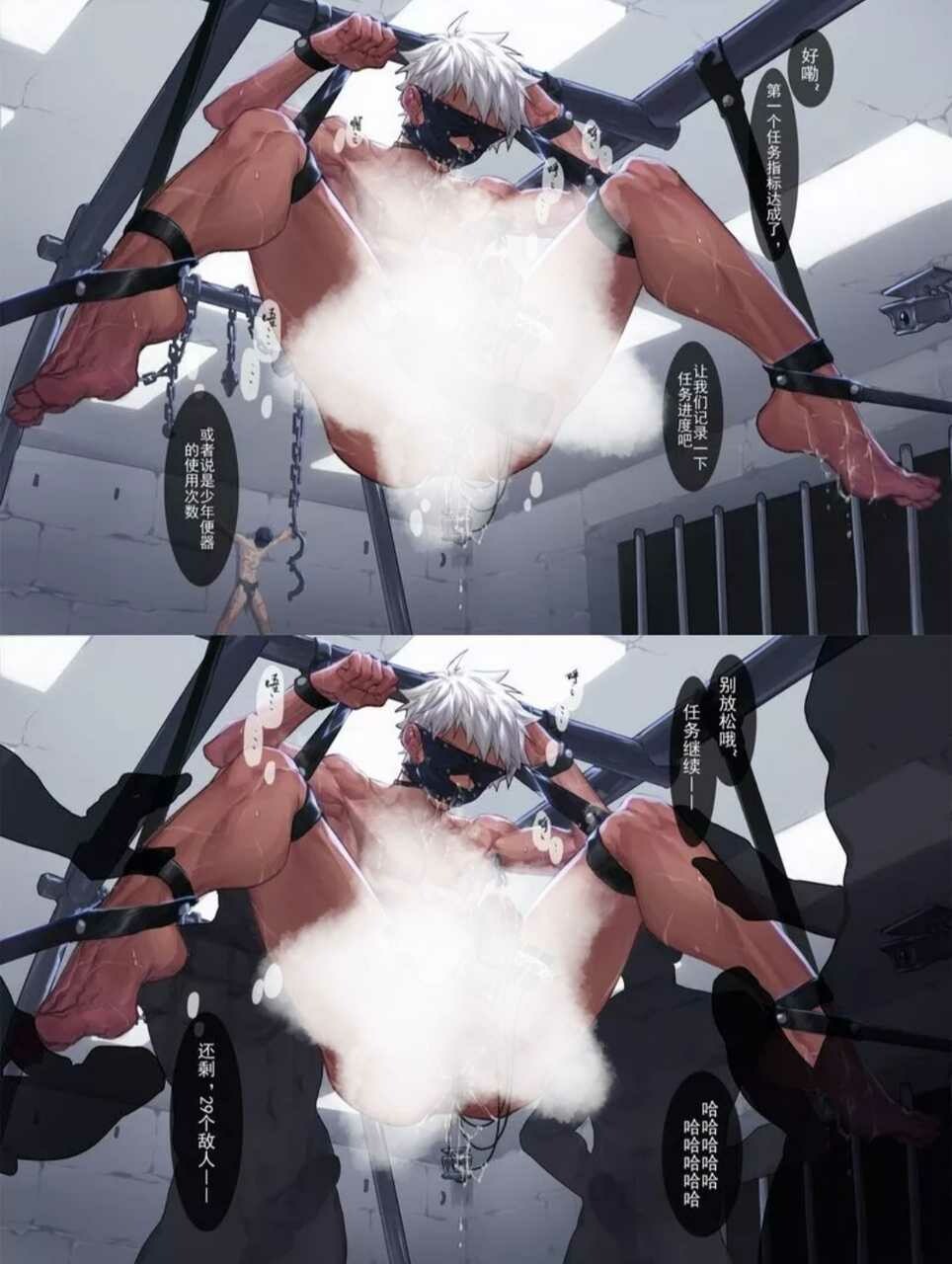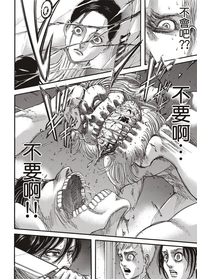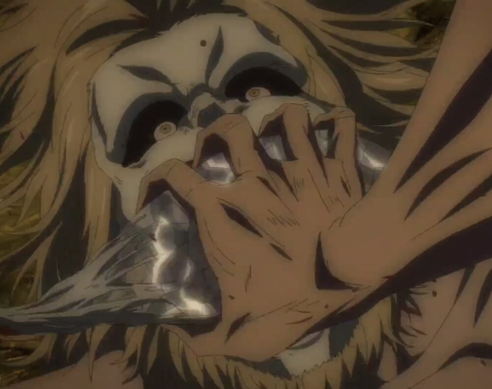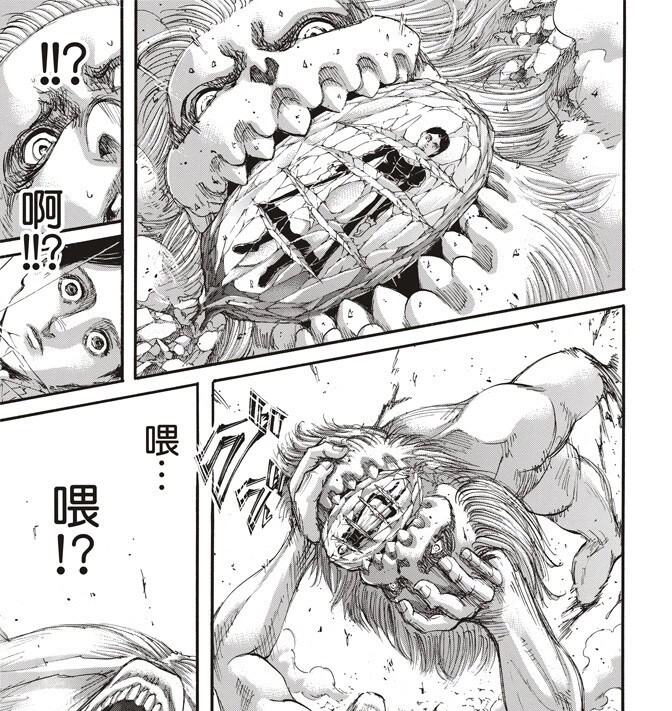 看看:吓出一身冷汗也忍不住要去看被塞进嘴里的奇怪的物件。可惜这个角度看不到哦~只好自己瞎想,结果越想越怕,恐惧顺着脊柱往上窜。怎么都快哭了?还连连说“不要不要”😖拜托!你是颚之巨人耶,刚才不是还很牛吗? 现在连声音都在颤抖,太丢人了吧