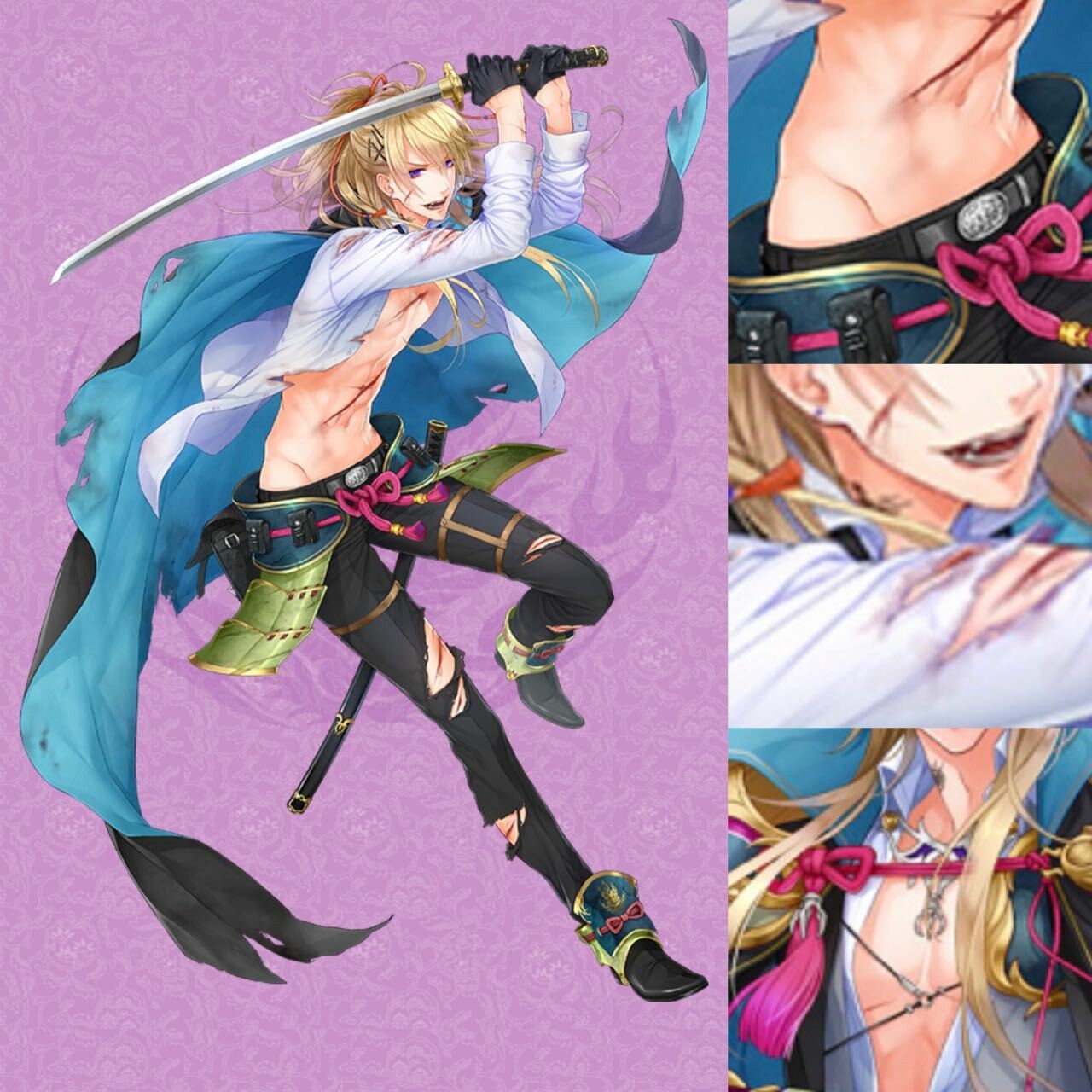 投稿理由:猫猫jk。有非常漂亮的喉结和虎牙,颈部文身若隐若现。好想掰开他的嘴用大拇指一下一下摩挲虎牙,看他因为付丧神刚刚显形不知作何反应而错愕的表情,嘴张也不是闭也不是,含糊地发出一些破碎的音节,最后只好用舌头舔舔你的手指。