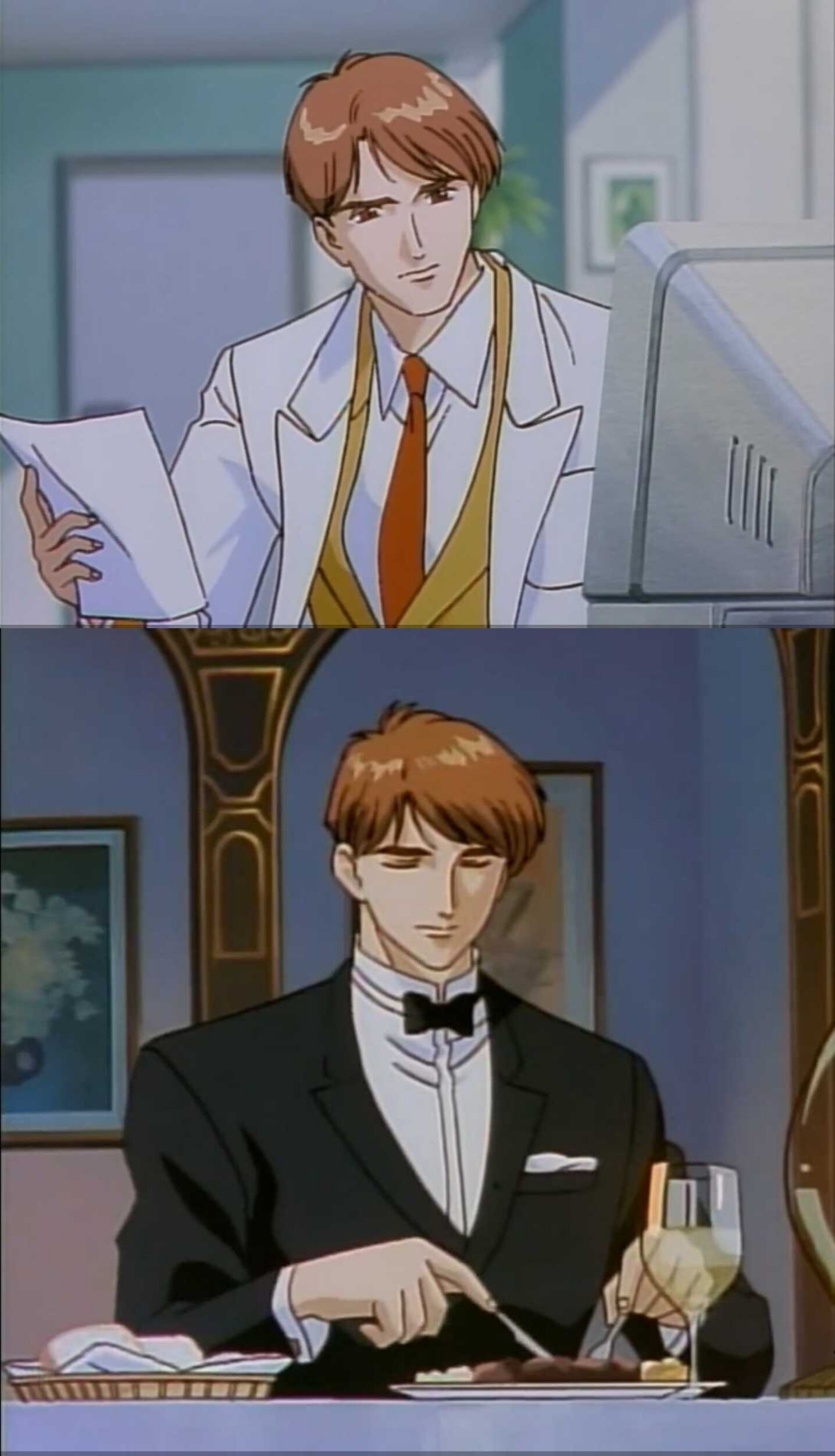 投稿理由:禁欲系魅魔,又S又M,身高188莫得感情,你爱他他只想吃掉你罢了。有一个镜头是他被扇了一巴掌后脸上残留着夏尔的血,他舔了那滴血以后整个人就兽性大发(谁懂)。还有一幕是他的眼镜不小心沾到了黄油,于是就把黄油舔掉了。没错,是舌头很灵巧的那种类型。真身是一只大蜘蛛——蒽、是活生生的恶魔没错了。哦对了,他侍奉主人时会单膝跪地说:“Yes, Your Highness”,胸前还别了一朵红玫瑰。