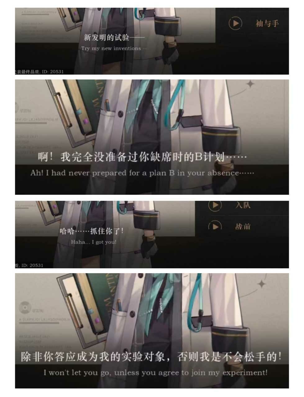 是全游戏里目前极为稀有的是在向“你”说话的角色!!!!!!(其它绝大部分角色并没有明确的表达对象,更像是在自言自语而不是与人交谈)