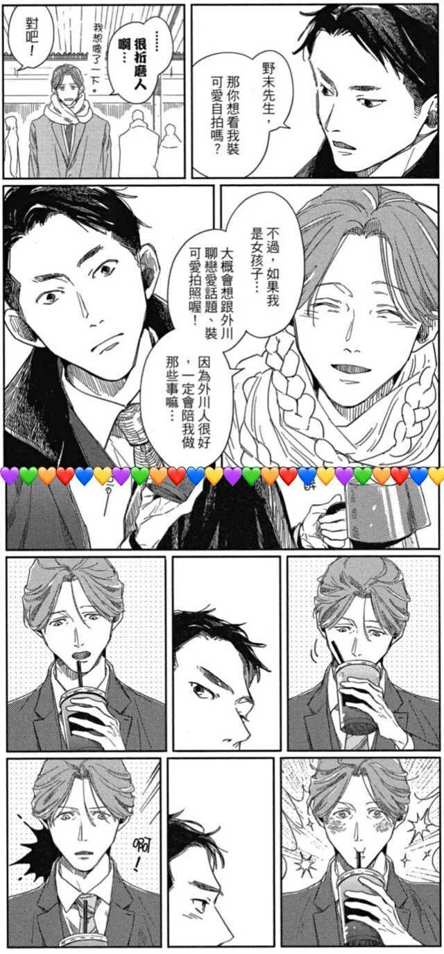 投稿理由:野末先生,我的新老婆和理想上司🥰用着最天真的表情说着让人浮想联翩的话🤤喝到了没尝试过的饮料会开心得星星眼😚逗下属结果翻车了被反撩,整个人都懵住😍被亲的时候会超可爱的举起双手🥰doi的时候再害羞也还是会满足对象的要求🥵这么成熟温柔又有魅力的中年帅哥也只有二次元才有了😭电视剧版也拍得很好!发我这条投稿的时候应该已经完结了,我愿称之为2022年日腐最佳💗