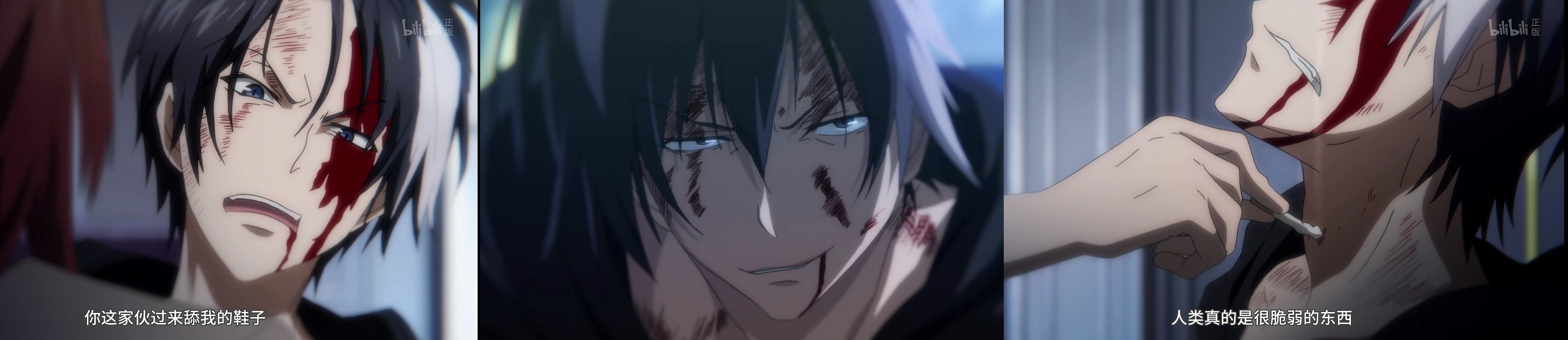 打斗中裤子破了,粘稠的血液流在修长白皙的皮肤小腿肚上。