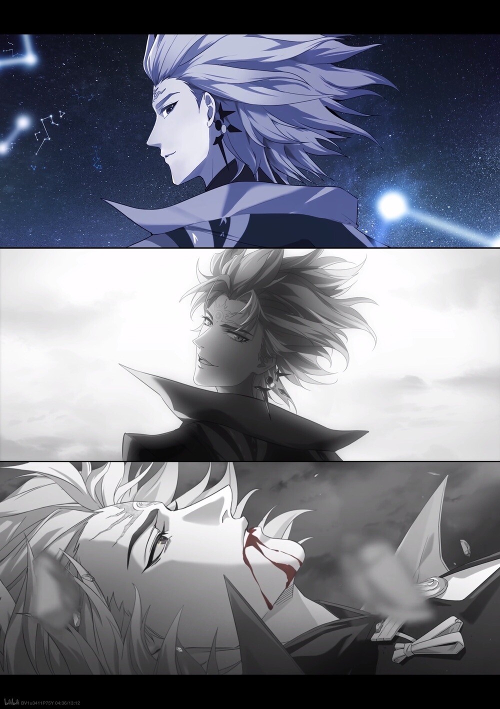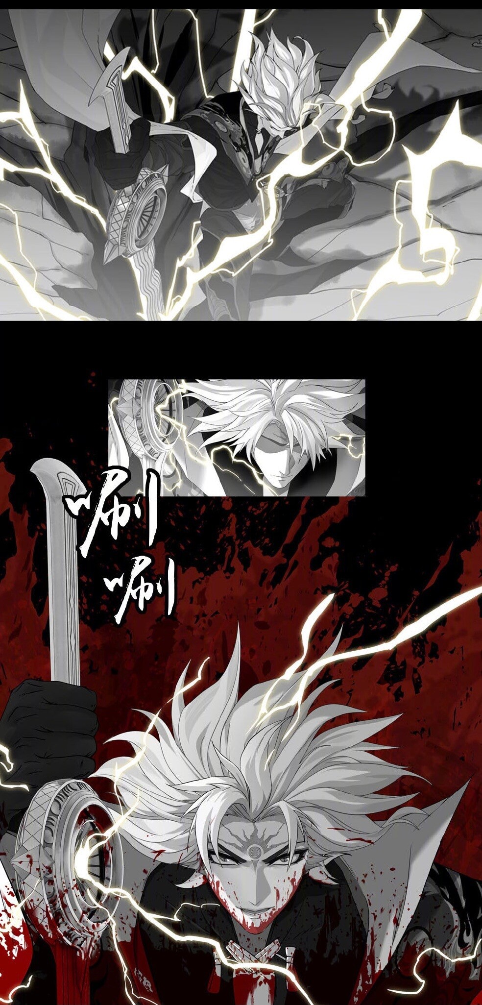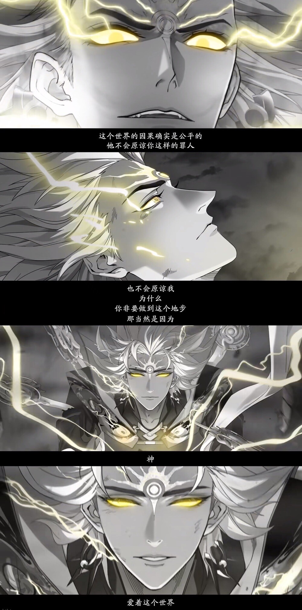 「浑身伤痕的须佐之男如同炼狱中爬出的恶鬼,周身戾气环绕,然而当他抬起头时,双目却透亮无比,没有丝毫畏惧,如同光芒万丈的惊雷」